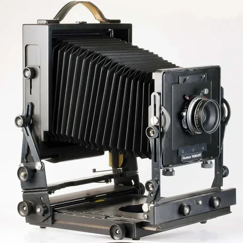 Câmeras de Visão (View Cameras): São dispositivos de grande formato que utilizam foles para conectar a lente a uma tela de vidro fosco. Sua principal aplicação profissional envolve os "movimentos de câmera" (inclinação e deslocamento), essenciais para corrigir perspectivas em arquitetura e expandir a profundidade de campo em estúdio sem sacrificar a abertura.
